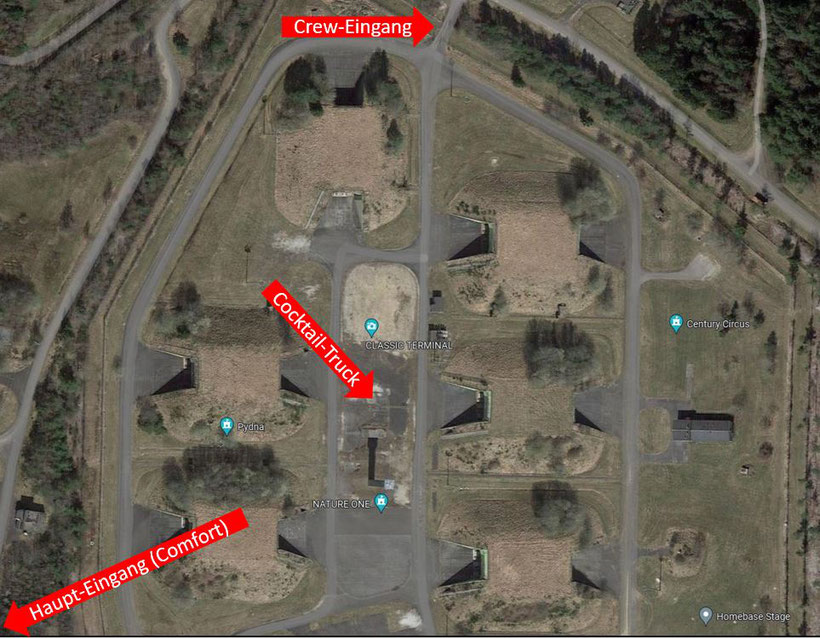 b.) Crew-Eingang: siehe Übersichtskarte. Zu diesem Eingang fährt der Shuttle-Bus.