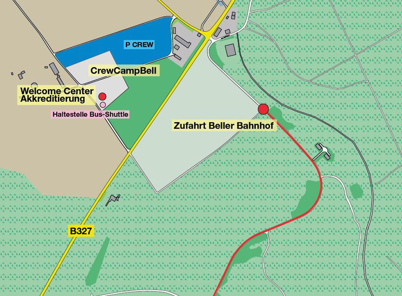 Es ist zwingend erforderlich, dass Du dein Auto am Crew-Camp abstellst.